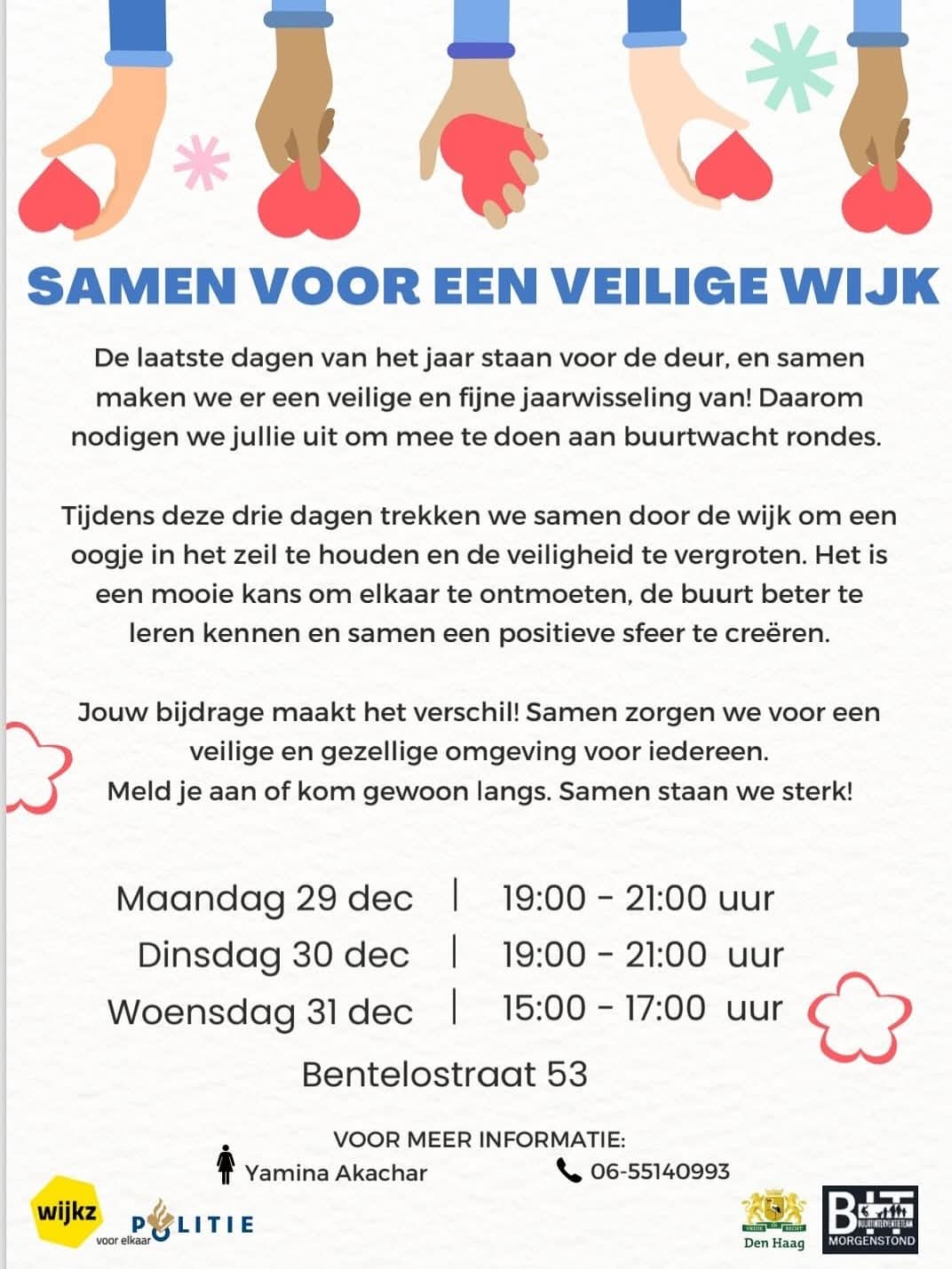 Samen voor een veilige wijk Calendar Wanneer: 30 december 2025 @ 19:00 – 21:00 2025-12-30T19:00:00+01:00 2025-12-30T21:00:00+01:00 Waar: Bentelostraat 53