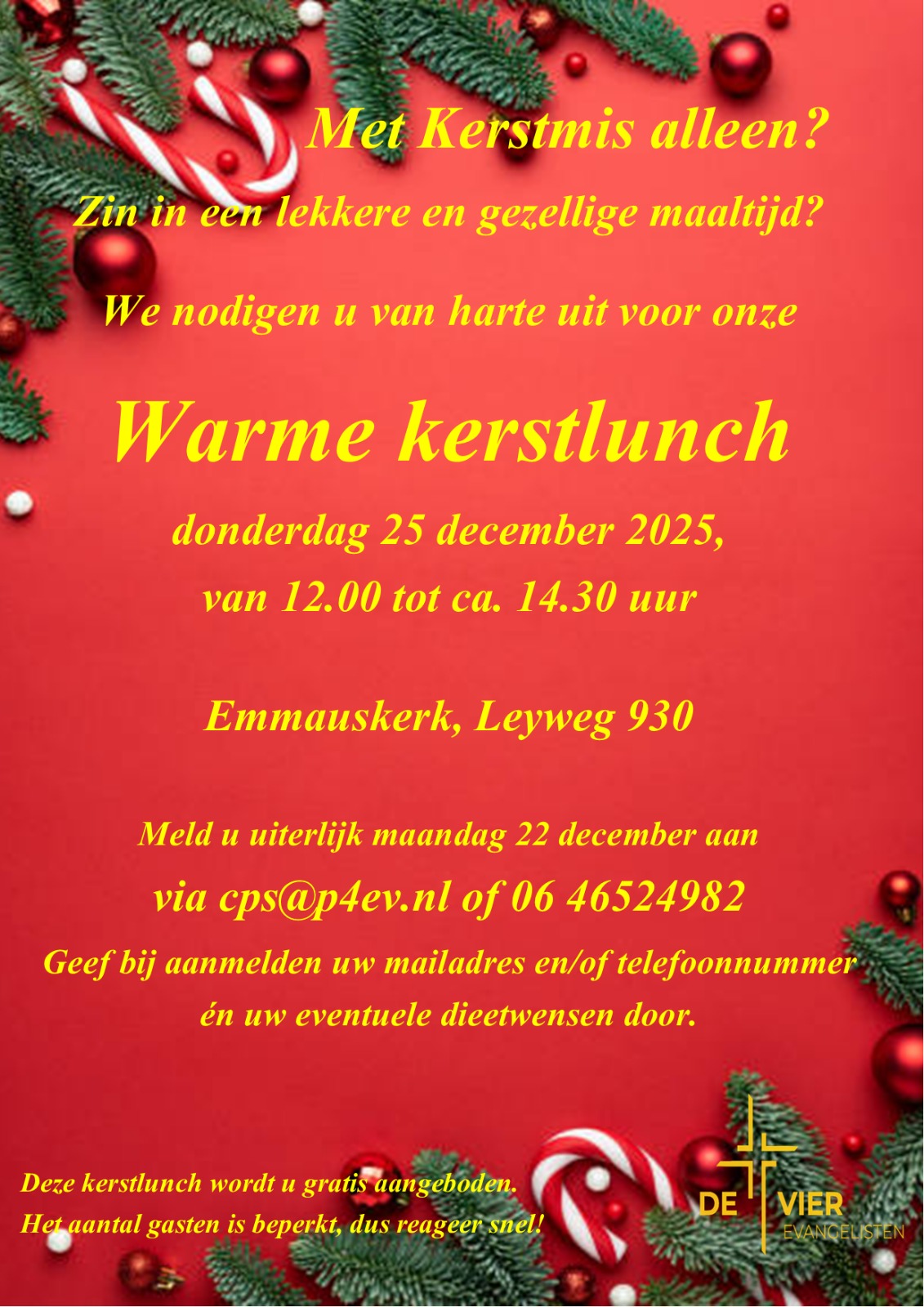 Warme Kerstlunch - aanmelden uiterlijk 22 december @ Emmauskerk
